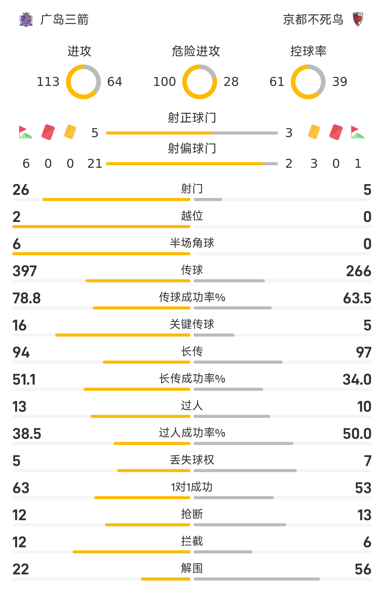 广岛三箭首发阵容:1-大迫敬介、33-盐谷司、19-佐佐木翔、3-山崎大地、41-前田直辉(46’17-木下康介)、24-东俊希(90’13-新井直人)、14-田中聪、51-加藤陆次树(61’98-热尔曼)、15-中野就斗、35-中岛洋太朗(90’4-荒木隼人)、9-杰梅恩·良(86’6-川边骏)